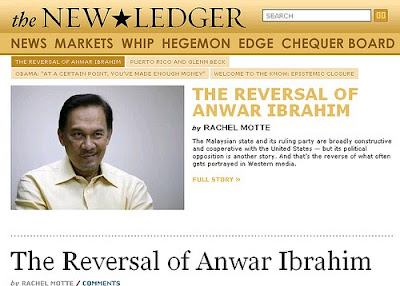 "Malah, pada 2008, (bekas naib presiden) Al Gore - yang terkenal sebagai lelaki yang bijak dan tajam persepsinya -- terdorong untuk menulis dalam laman blognya bagi mempertahankan maruah Anwar apabila dia dikritik.