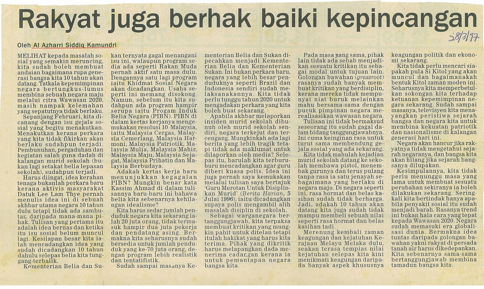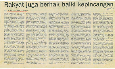 Bukanlah maksud penulis kerajaan tidak membuat silap. Tiada manusia hatta kerajaan yang tidak buat silap melainkan nabi kita Rasulullah SAW. Perdana Menteri DS Najib dengan rendah diri memohon maaf kepada rakyat Kedah dan Selangor, dan sebagai PM yang baru, penulis yakin DS Najib mahu menjadi PM yang terbaik kepada zaman dan generasi selepasnya. Mengkritik kerajaan bukanlah tidak boleh, tetapi merosakkan kerajaan yang baik satu kesilapan yang maha besar. Penulis pun ada menulis perkara ini,
