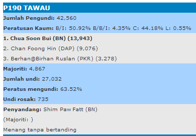Melihat kepada Sejarah Parlimen Tawau, mana-mana calon BN mempunyai kelebihan untuk menang. Dahulu, Datuk Chua Soon Bui, Shim Paw Fatt dan Goeffrey Yee memenangi dengan mudah atas tiket BN.