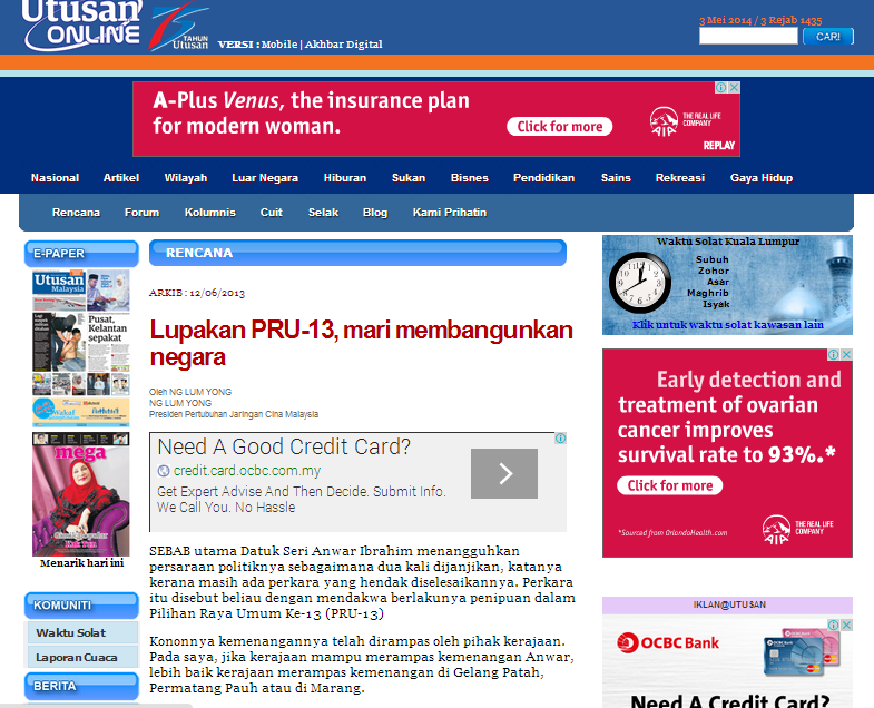 Brp Ng Lum Yong dibayar oleh Utusan barangkali atau oleh sesiapa dengan artikel terbaik menjelng PRU13 itu...inilah yg dikata lembu punya susu sapi dapat nama... memalukan!