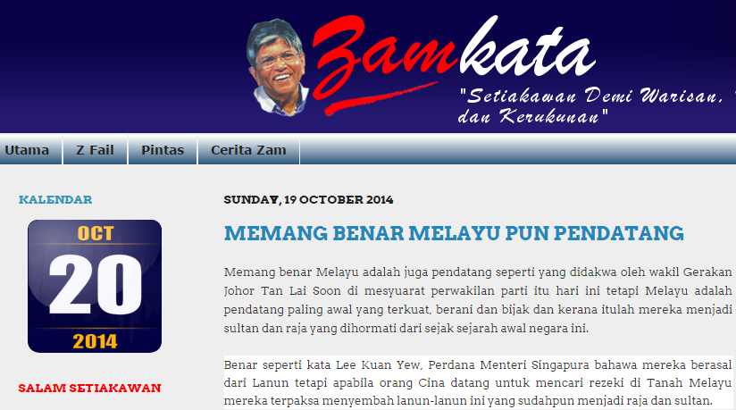 Saya juga tidak bersetuju dgn Zam, dia mamak asal India, dia bukan Melayu Nusantara sebab tu dia kata Melayu juga pendatang...kalau merujuk kepada dirinya sendiri memang betullah...