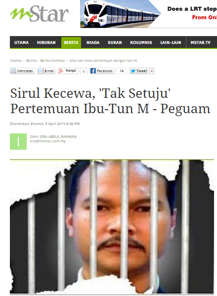 Manakala laporan ini menyebut, Sirul meluahkan kekecewaan dan rasa amat kesal kerana ibunya dimanupulasi dibawa bertemu Tun Dr. Mahathir untuk kepentingan politik mereka. Sirul menelefon dua kali peguamnya menyatakan rasa kesalnya dengan pertemuan itu.