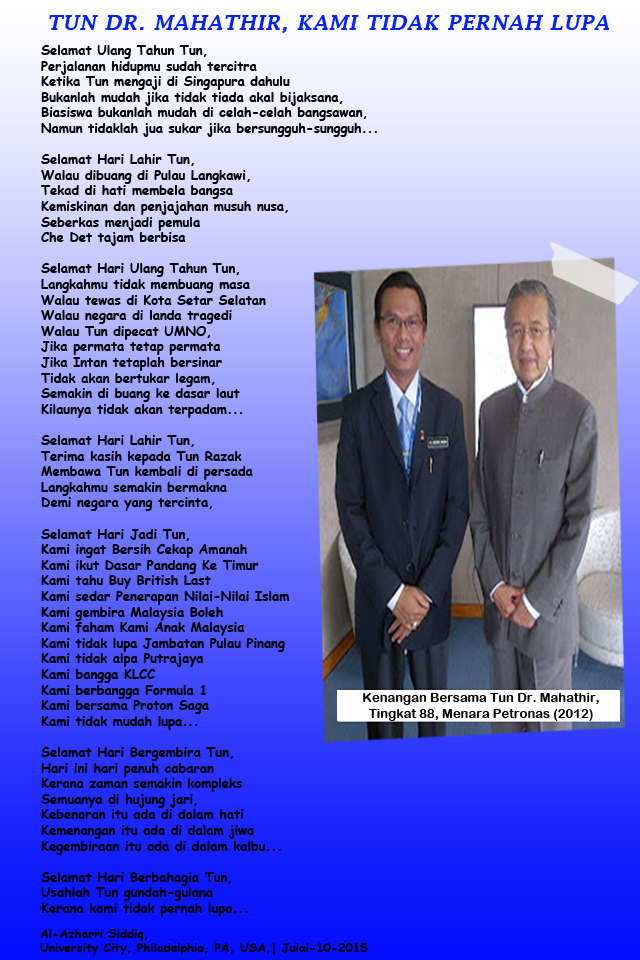 - TUN DR. MAHATHIR, KAMI TIDAK PERNAH LUPA