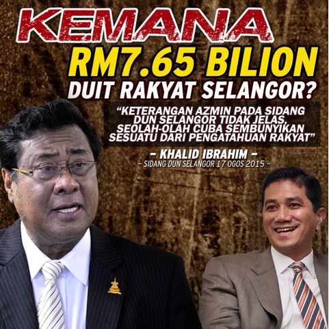 Di dalam Dewan Undangan Negeri Selangor minggu ini, MB Azmin Ali terkapai-kapai, tersekat-sekat dan merah kemerah-merahan wajahnya kerana gagal menjawab soalan TS Khalid Ibrahim dengan yakin. Soalannya sangat-sangat mudah! Di mana wang RM7.65 Bilion? Sehingga ke hari ini Azmin gagal menjawab dengan betul.