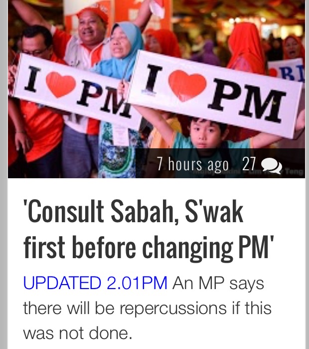 Sekiranya Datuk Seri Najib Razak ditukar tanpa mengambil kira perasaan negeri Malaysia Timur itu, akan berlaku akibat yang tidak diingini". Saya setuju.